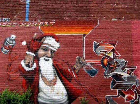 Graffiti is one of the most ancient art that has been there. But the graffiti also included one of the most important part in the art of hip hop, how graffiti and hip hop together and attached so it looks identical. With Christmas on 25 December that only days away making graffiti artists want to give Christmas gifts for everyone. Creating something different on each wall street. Starting from the christmas tree, santa and Christmas congratulations ....